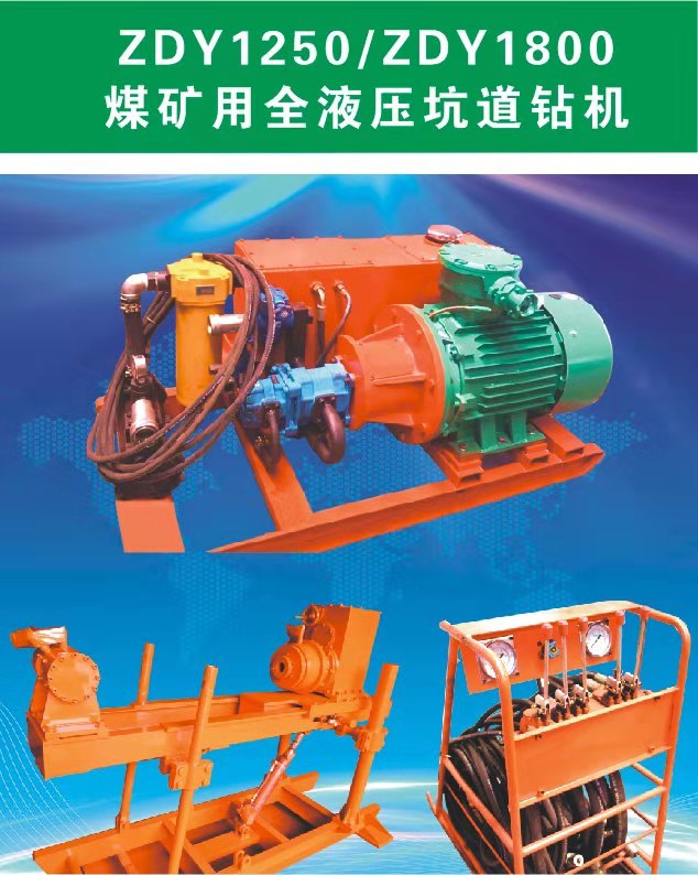 ?ZDY1250/ZDY1800 型煤礦用全液壓坑道鉆機主要適于在煤礦井下鉆瓦斯抽放孔、排放孔、煤層注水孔、注漿防滅火孔、地質(zhì)勘探孔和各種工程孔。適用于巖石堅固性系數(shù)f≤10各種煤層、巖層。鉆機適應(yīng)巷道斷面積≥6.5m2。或者寬度≥2.8m,高度≥2.5m。